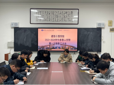 2月27日上午10点,建工学院在5号教学楼会议室召开了2023-2024学年度第二学期第一次全体教职工大会,会议由院长何红霞主持。