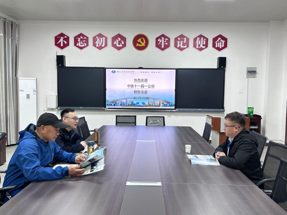 4月4日下午,中铁十一局集团第一工程有限公司人事部主任谢世杰到建筑工程学院洽谈合作,学院党总支书记崔书太、副院长叶洪飞出席会议。
