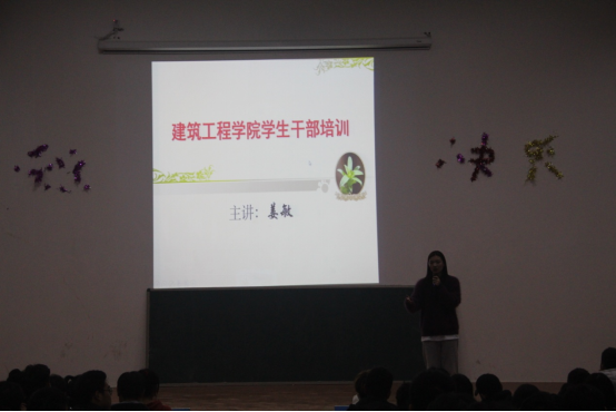 2021年11月11日下午七点,建筑工程学院在一号教学楼501阶梯教室开展了本学期学生干部培训大会,此次培训大会由姜敏老师主讲,建筑工程学院学生会、团总支、各班级全体学生干部参加了培训。