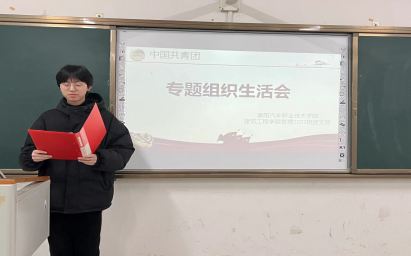 为深入学习宣传贯彻党的二十大精神和习近平新时代中国特色社会主义思想,特别是习近平总书记关于青年工作的重要思想和关于教育的重要论述,落实团十九大和团十九届二中全会全面从严治团部署要求,2024年1月9日,建筑工程学院工程管理2203团支部召开2023年度示范性专题组织生活会和团员民主评议大会。大会邀请襄阳汽车职业技术学院校团委书记沈毅、建筑工程学院副院长、学管党支部书记张伟、辅导员杨晨宇参加会议,会议由管理2203班团支书包柱鼎主持。