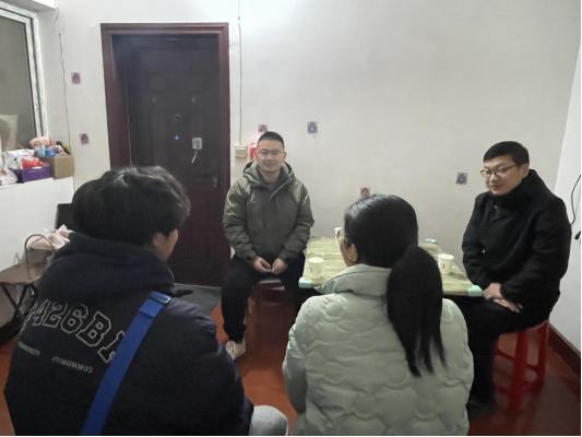 3月2日下午建筑工程学院辅导员杨晨宇到造价2301班学生蒋欣桐家中进行家访活动。家访中,杨晨宇向家长反馈蒋欣桐上个学期的学习、生活情况,对学生成长表示肯定。同时了解学生未按时返校原因,针对性开展思想教育,勉励学生要尽快返回学校,融入学校的大家庭。