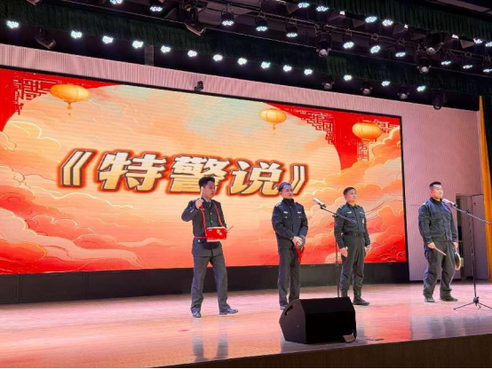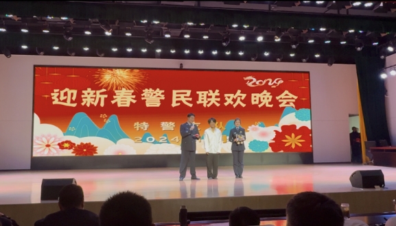 2024年12月5日晚,我校建筑工程学院市政2401班刘荣同学应邀参加了襄阳市特警支队举办的“迎新春警民联欢晚会”,为在场的特警们献上了我校第一届校园舞蹈大赛一等奖作品《念去去》,引来特警支队的领导和同志们的阵阵喝彩,给现场的观众带来了一场视觉盛宴。表演结束后刘荣为在场的特警同志们送去了新年的祝福,祝他们工作顺利、全家幸福、正因为有他们的存在,民众才能够安心工作、学习和生活,享受着和谐社会的美好与安宁。随后获赠了象征着警察们勇敢、专业、无私奉献、守护社会安宁与秩序的“警察小熊”。