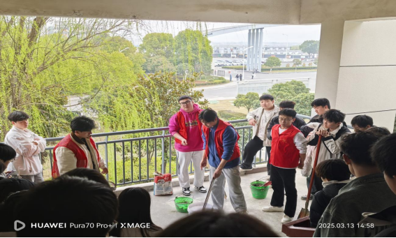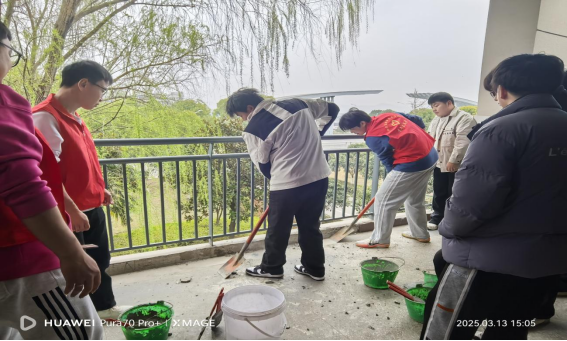 活动期间,还设置了别出心裁的师生互动环节。3月13日,在连廊处,5名“红瓦刀“队员在旁实际操作,指导老师刘铸详细讲解了踢脚线修复的标准和流程,现场还积极解答师生关于日常维护的问题,充分调动了师生参与的积极性。