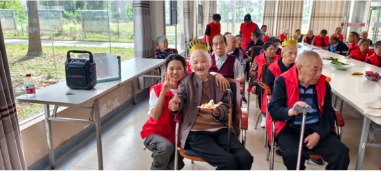 活动现场还为近期过生日的爷爷奶奶们准备了一场特别的生日会。当精美的生日蛋糕被推上舞台,蜡烛的火光在春日的微风中摇曳,全场响起了温馨的生日祝福歌。志愿者们围在老人们身边,为他们戴上生日帽,一起许愿、吹蜡烛、切蛋糕。老人们眼中闪烁着幸福的泪花,脸上洋溢着满足的微笑。