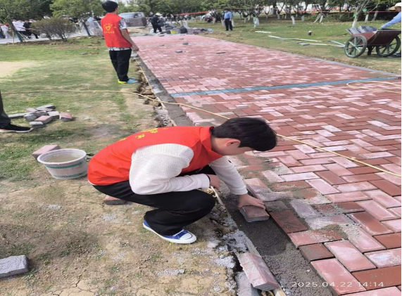 建设时,队员们在工人师傅指导下分工明确。有的队员不辞辛劳搬运砖块,哪怕汗水湿透衣衫也不停歇;有的专注学习铺设技巧,力求精准嵌入砖块;还有的精心调配沙土水泥,保障道路基层稳固。即便施工天气多变,队员们也未动摇,以坚韧毅力和吃苦精神,成为校园独特风景。