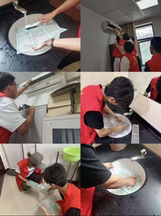 通过对空调滤芯的深度清洁,有效提升了空调工作效能,降低能耗的同时,显著改善了校园空气质量,为师生打造了更健康舒适的学习工作环境。红瓦刀志愿队队员们用专业规范的操作流程和热情周到的服务态度,成为校园里一道温暖的风景线。他们的行动不仅增强了自身的环保与责任意识,更以榜样力量带动身边同学主动参与校园服务。