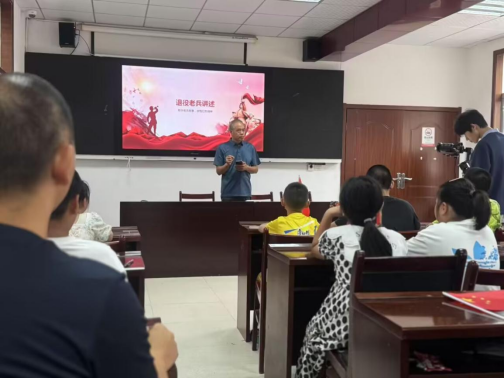 活动现场,一位胸前勋章闪耀的老兵成为“最燃”的“党课教师”。他身着朴素的着装,目光如炬,以质朴的语言将师生带回那段烽火岁月。从枪林弹雨中的冲锋陷阵,到建设年代的艰苦奋斗,老兵用亲身经历诠释了“信仰的力量”。他讲述的每一个战斗细节、每一句朴实誓言,都在无声传递着对党的赤诚与对祖国的热爱。聆听中,不少学生红了眼眶、攥紧了拳头。“原来历史书上的‘英雄’离我们这么近,他们的精神是我们最该传承的‘宝藏’”。
