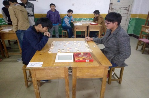 学校里的棋类爱好者在这里相互切磋棋艺、交流经验。比赛以随机的方式分小组进行比拼,最后每个小组的第一名再进行决赛,角逐最后的棋王的称号。其中尤其受到同学们欢迎的是象棋类,参赛的人众多,且比赛尤为激烈。整个比赛过程由懂得棋艺的学生干部组成的裁判团观战和裁定。