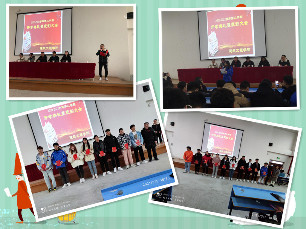 最后,崔书太书记总结讲话,提出为了实现学院发展、师生进步的前景,我们必须明确目标,建筑工程学院拟定了2021年十大奋斗目标,为了这些共同目标,全院上下当齐心协力、共创未来。同时对在座的每位同学提出了三点要求:一、素养。作为一名大学生要不断培养自己的政治素养和文明素养。二、技能。作为一名大学生,一定要加强学习,注重自己的专业技能技术的提升,增强干事创业的本领。三、安全。除了常规的防水、防电、防火、交通安全以外。还要谨防各类网络、信用卡诈骗。随着高科技、信息化的发展,各种新型诈骗收到层出不穷,作为一名大学生,我们要时刻保持清醒的头脑,不为利用诱惑所动。同时要预防心理健康方面出现问题,养成良好的生活习惯,培养健康向上的兴趣爱好,树立正确的价值观念,保持充实饱满的精神状态。