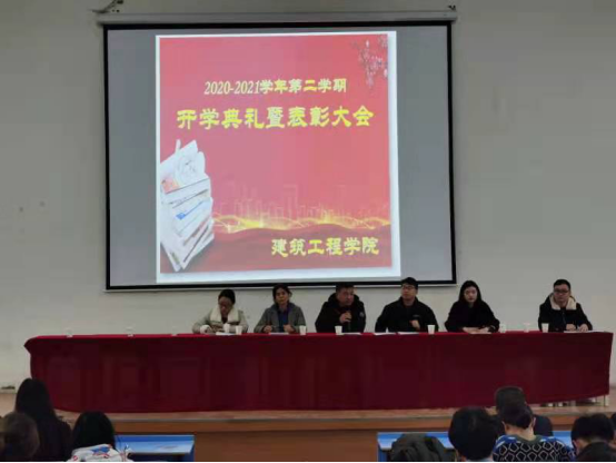春晖沐寸草,万物勃生机。2021年3月5日,我院2020-2021学年第二学期开学典礼暨表彰大会隆重举行。崔书太书记、胡艳丽院长、李勇副院长、张赞副院长及各班辅导员(班主任)和全体同学参加会议。会议由叶洪飞老师主持。