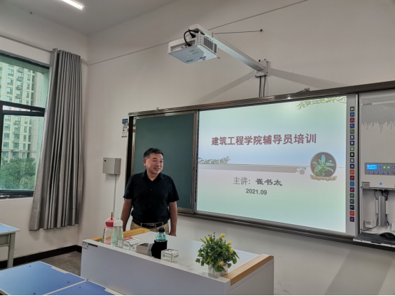 辅导员是开展大学生思想政治教育的骨干力量,是高校学生日常思想政治教育和管理工作的组织者、实施者和指导者。为加强辅导员班主任队伍建设,充分发挥辅导员班主任在班级教育和管理工作中的重要作用,增强辅导员班主任的理论知识,提高辅导员班主任工作技能水平。2021年9月12,建筑工程学院开展了辅导员班主任培训学习,本次培训由建筑工程学院书记崔书太主讲,全体辅导员班主任参加培训。