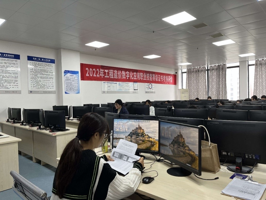 11月13日下午14点至17点,教育部1+X工程造价数字化应用职业技能等级考核(中级)在实训楼A309BIM 1+X软件综合实训室举行。我院21级工程造价专业学生,经过摸底测试和选拔,挑选出13名考生参加了此次考试,最终13名考生通过了此次考试,实现100%的通过率。