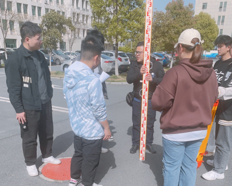 在交流指导期间,建筑工程学院参赛学生现场完成了一次水准测量,测量结束后王威老师就此次测量点出了问题所在,并提出相关改进意见。同学们通过这次交流也获益匪浅,明确了自己的不足,并表示将会全力以赴,争取在本次测量大赛中取得优异的成绩!