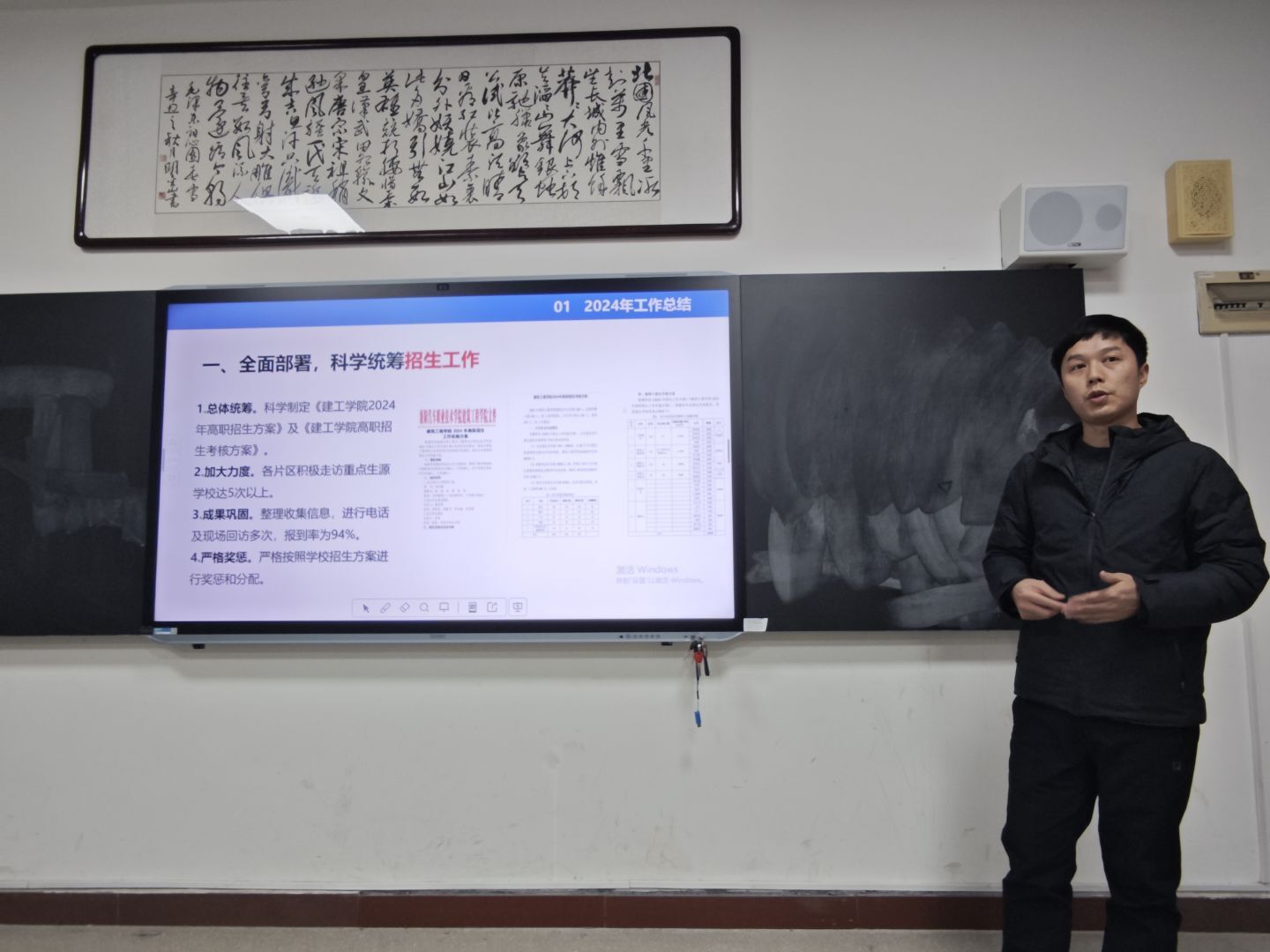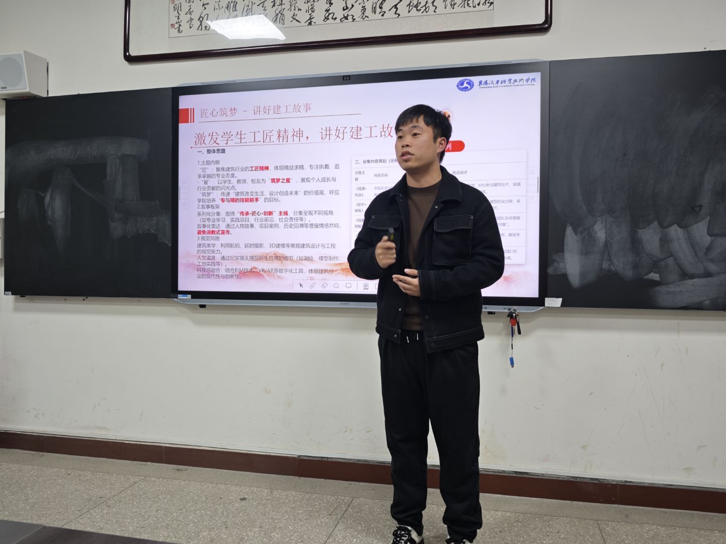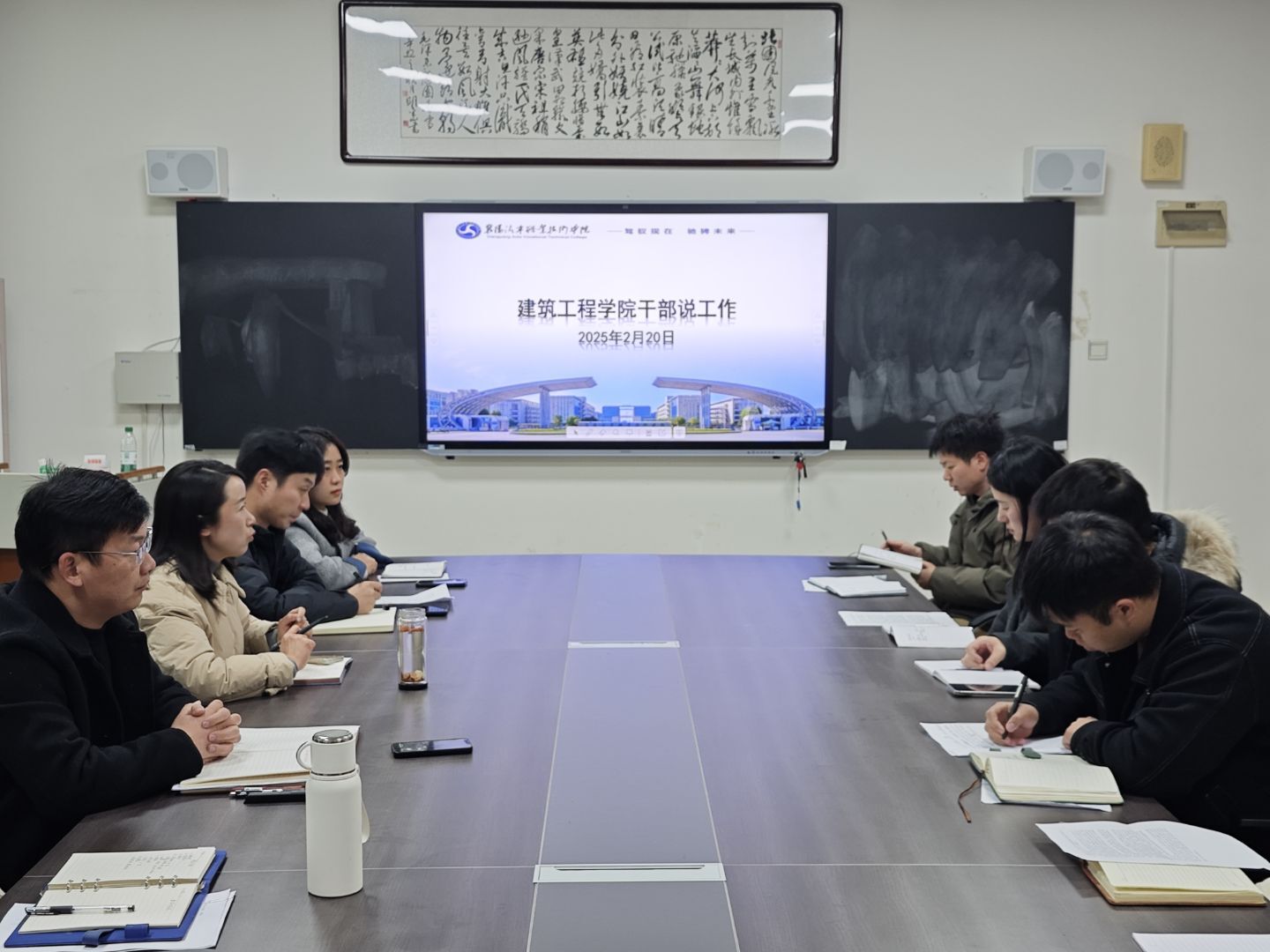 党总支书记李勇直面党建工作痛点,提出构建"党建+专业"融合矩阵,深化"红瓦刀"志愿服务品牌,推动组织建设与专业发展同频共振;教学副院长殷秋雨锚定"五金建设"目标(金专、金课、金师、基地、金教材),重点攻坚省级高水平专业群建设,着力打造智能建造人才培养高地;招就副院长张俊聚焦校企协同育人创新,计划通过订单培养、共建产业学院等模式,构建"招生-培养-就业"全链条育人生态;学管团队提出打造"浸润式"实践育人品牌,通过项目化运作提升学管活动影响力。各教研室立足产业发展前沿,聚焦模块化教学改革与智慧建造转型,着力构建产教深度融合的课程体系;各秘书均围绕行政管理、服务保障等提出提质增效的具体举措。