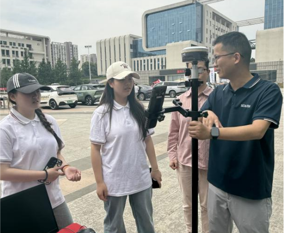 上午8点30分,活动在红旗广场正式拉开帷幕。展区分为两个主题板块:智能测量技术区展出了工程测量虚拟仿真系统、高精度RTK测量仪、三维激光扫描仪等设备;数字建造区展示了测绘技术应用成果和扫描模型展示。活动现场气氛热烈,师生互动频繁。在专业教师的指导下,参观学生可以亲自操作智能测量设备,体验从数据采集到成果输出的完整工作流程。
