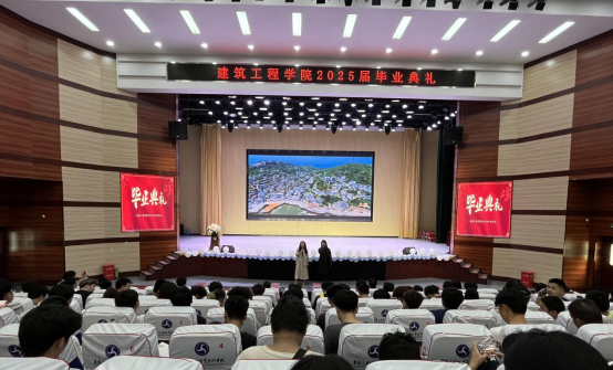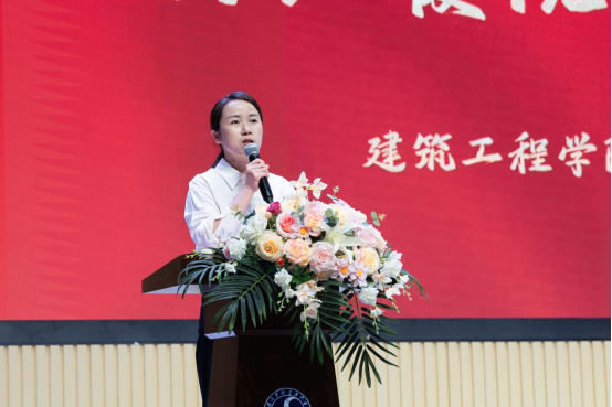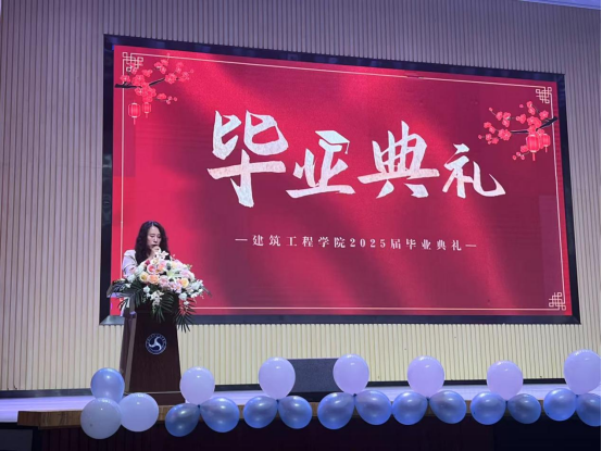 院长致辞环节,何院长首先回顾了同学们在校期间参与的专业实践、学科竞赛等成长历程,对大家顺利完成学业表示祝贺。她指出,建筑行业承载着城市建设与民生福祉的重任,同学们作为未来的行业建设者,更应将“止于至善” 融入职业追求。无论是设计图纸时的分毫必究,还是工程建设中的质量把控,都要秉持精益求精的匠心;在团队协作与社会服务中,也要坚守善良正直的本心,以专业能力与人文情怀打造经得起时间检验的优质工程。最后,她寄语毕业生牢记母校培育之恩,带着 “止于至善” 的信念奔赴未来,在各自岗位上创造价值,书写精彩人生篇章。
