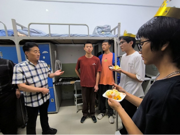 当晚,包校长亲切看望了恰逢生日的两名大一新生---方志豪和刘昊洋同学,为他们戴上生日帽并送上蛋糕和祝福,询问两名同学入学感受和对新环境的适应情况,勉励他们生日既是新的开始,开学亦是新的征程,希望他们在襄汽这片沃土上汲取养分,锤炼品格,增长才干,努力成长为堪当民族复兴重任的时代新人。两名同学也激动地表示,此次独特的开学礼物消除了他们离家的忐忑,感受到了学校的温暖,他们一定会牢记师长的嘱托,努力奋斗,不辜负学校的培养和期望。