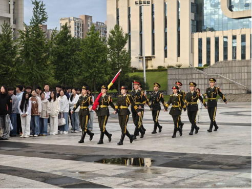 清晨6点45,红旗广场上已是人头攒动,师生们身着整齐服装,精神饱满,列队肃立。7点整,仪式正式开始。学校国旗护卫队迈着铿锵有力、整齐划一的正步,护卫着鲜艳的五星红旗走向升旗台。他们的步伐坚定,目光如炬,充分展现了我院学子昂扬向上的精神风貌。