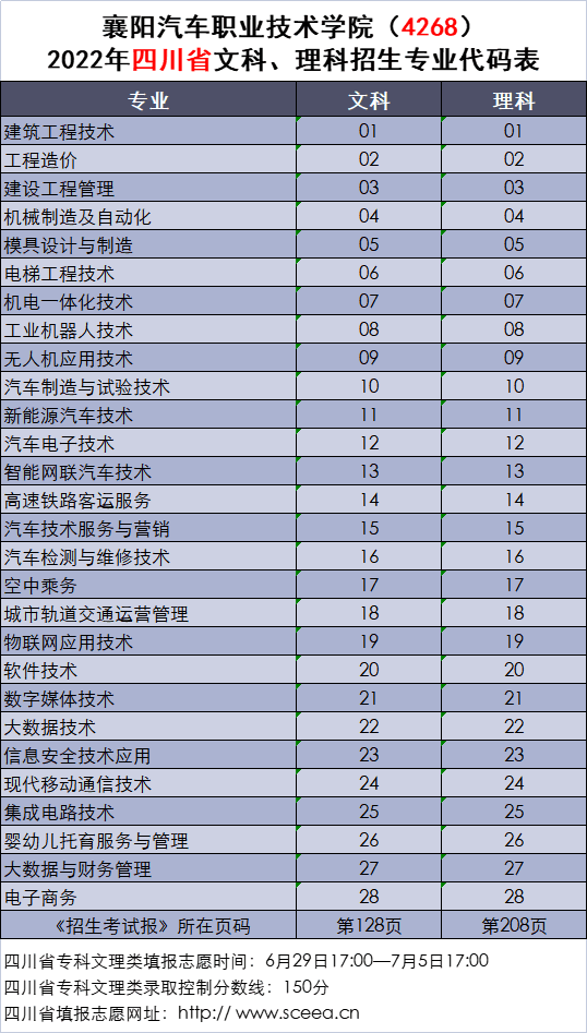 2022年四川省文科、理科招生专业代码表