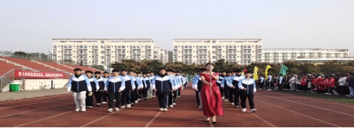 听,雄壮地《运动员进行曲》己经奏响,看,庄严地五星红旗正向主席台徐徐走来;同学少年,风华正茂,呈飒爽英姿,试比天高。瞧,校旗,院旗,彩旗队向我们走来。