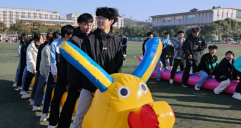 学生趣味项目:毛毛虫、拔河、跳大绳、50米迎面接力。每项均有老师参与。不仅提高了运动激情,也加深了师生友谊。